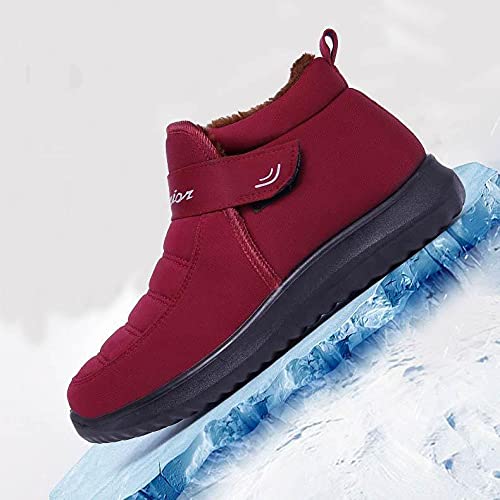 XUNN Stivali invernali da donna, in velluto caldo, impermeabili, con punta arrotondata, in cotone, stivali da neve, Colore: rosso, 41 EU