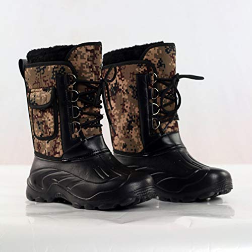 Stivali Invernali da Uomo Piattaforma Antiscivolo Impermeabile Stivali da Neve a metà Polpaccio Tasca Patchwork in Pelle Mimetica Scarponi da Sci da Escursionismo all'aperto