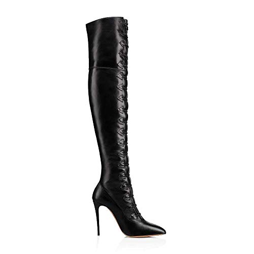 Stivali Lunghi, Stivali sopra Il Ginocchio Europa E America Tacco Alto Nero Sottile Scarpe da Donna Invernali di Grandi Dimensioni A Punta,Nero,36