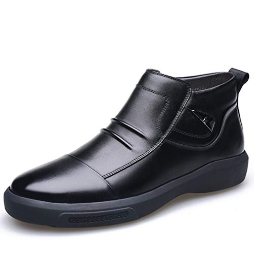 Stivali da uomo in pelle con cerniera piatta Nero Khaki Autunno Inverno Plus Stivali da neve caldi in velluto Decorazioni in metallo Stivali da lavoro quotidiani casual da ufficio
