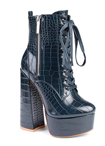 Stivali Quadrati Robusti da Donna con Tacco Alto - Scarpe col Tacco con Plateau - Classiche Stivaletti Donna Inverno - Stivali con Stampa Animalier - 15CM Stivali con Tacco Largo con Plateau Blu EU39