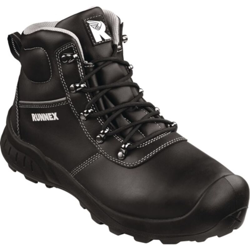 Secondo DIN EN ISO 20345:211 · S3 SRC · Tomaia: pelle liscia idrofoba · RUNNEX® Overcap di protezione in alluminio · Protezione dalla penetrazione, senza metalli · soletta traspirante e a tutta superficie per la sostituzione in Poliyou® · runNEX traspirante® fodera funzionale AIRSTREAM · Suola in PU (nero), resistente al calore fino a circa 200°C, senza sfarinamento · RUNNEX® Sistema di smorzamento EVA · Larghezza 11 · secondo DGUV 112-191 · Focus di applicazione: Le scarpe antinfortunistiche garantiscono elevato comfort, massima stabilità ed elevata protezione contro le cadute dovute allo scivolamento. Possono essere utilizzati universalmente, e.B. nell'industria, nel commercio, negli spazi interni ed esterni Altre caratteristiche tecniche: · Toe cap: Alu-Protection · Intersuola: PU · Versione: DGUV 112-191 · Norma: EN ISO 20345. Colore: nero/grigio, Taglia: 45, Numero di scarpe: 11, Classe di protezione: S3 SRC, Serie: TeamStar, Materiale: Pelle liscia, Marca: RUNNEX, Categoria DPI
