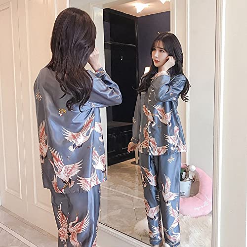 STJDM Camicia da Notte,Pantaloni Oversize a Maniche Lunghe da Donna Pigiama Set Pigiama in Raso di Seta Indumenti da Notte Camicia da Notte Abito Abito da Bagno Camicie da Notte XL Blu Grigio