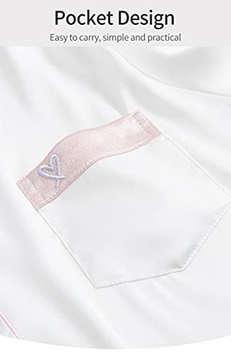 STJDM Camicia da Notte,Pigiama Corto in Raso Donna Estate Solido Bianco Pigiama Abbigliamento per la casa Indumenti da Notte Corti in Raso L Bianco