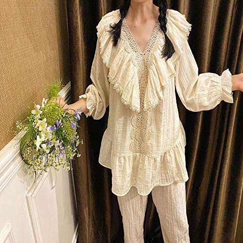STJDM Camicia da Notte,Pigiama in Cotone Pigiama Donna Set Pigiama da Notte INS Lady L Beige