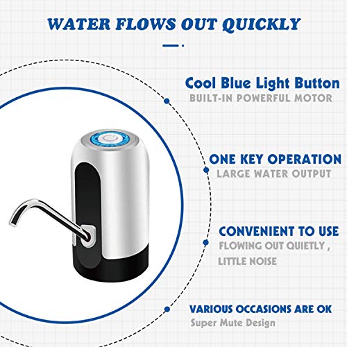Batteria ricaricabile USB: batteria ricaricabile integrata da 1200 mAh. Può essere utilizzata per 30-40 giorni o circa 4-6 bottiglie da 5 galloni di acqua una volta caricata completamente. Non è necessario ricaricare ogni giorno.