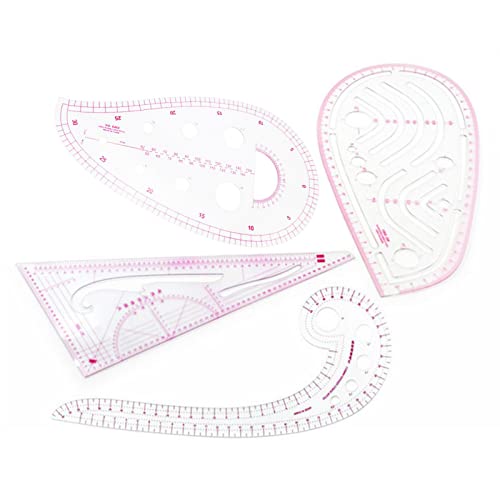 4 Stlye French Curve Ruler for Sewing, Plastic Metric Sewing Tools Measure Dressmaking Pattern Design Clothing Bendable Drawing Template Metrico Misura Francese Curva Righello Cucito (Chiaro, Rosso)