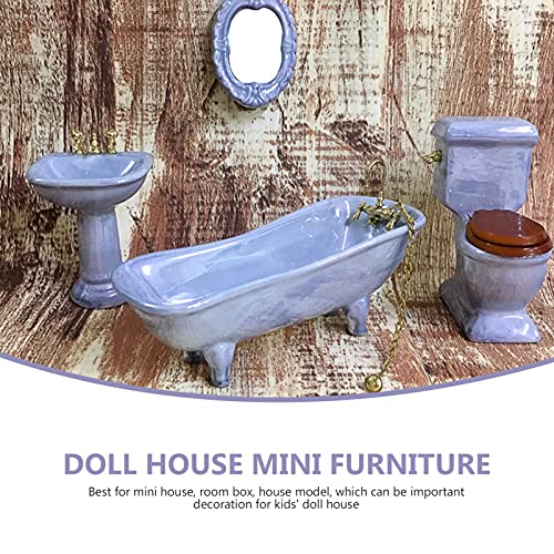 STOBOK 1 Set Miniatura Casa delle Bambole di Porcellana da Bagno Set 1: 12 in Scala Set da Bagno in Ceramica con Dollhouse WC Casa delle Bambole Specchio E Casa delle Bambole Vasca da