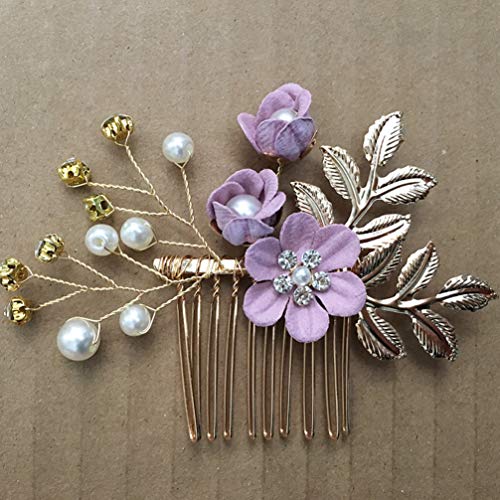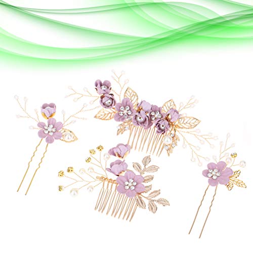 STOBOK 4 Pezzi Copricapo Set Viola Fiore Perla Cristallo Pettine per Capelli da Sposa per Capelli da Sposa Copricapo Gioielli per Capelli Accessori da Sposa per Le Donne Ragazza (Viola)