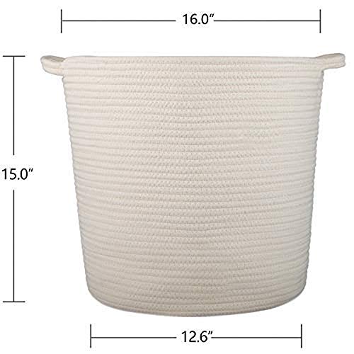 Stoccaggio baskets-large cotone corda cestini con maniglie morbido durevole Toy Storage nursery bidoni casa decorazioni (bianco)