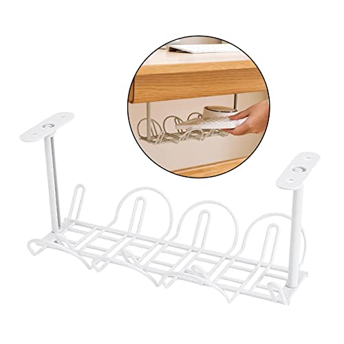 #N/a Rack di Stoccaggio di plastica Sotto La Scrivania Vassoio di Gestione Dei Cavi di Legare del Cavo Supporto di Mensola, Auto Adesivo - Bianco