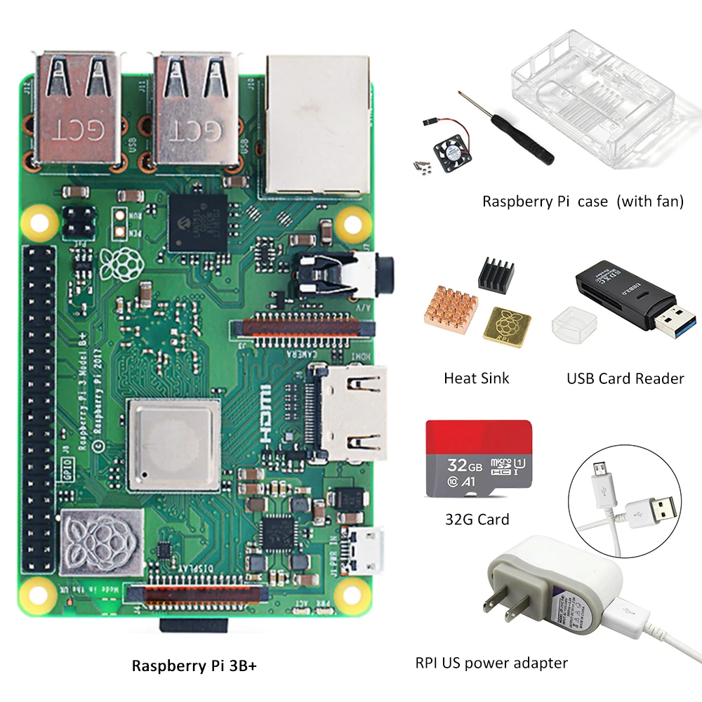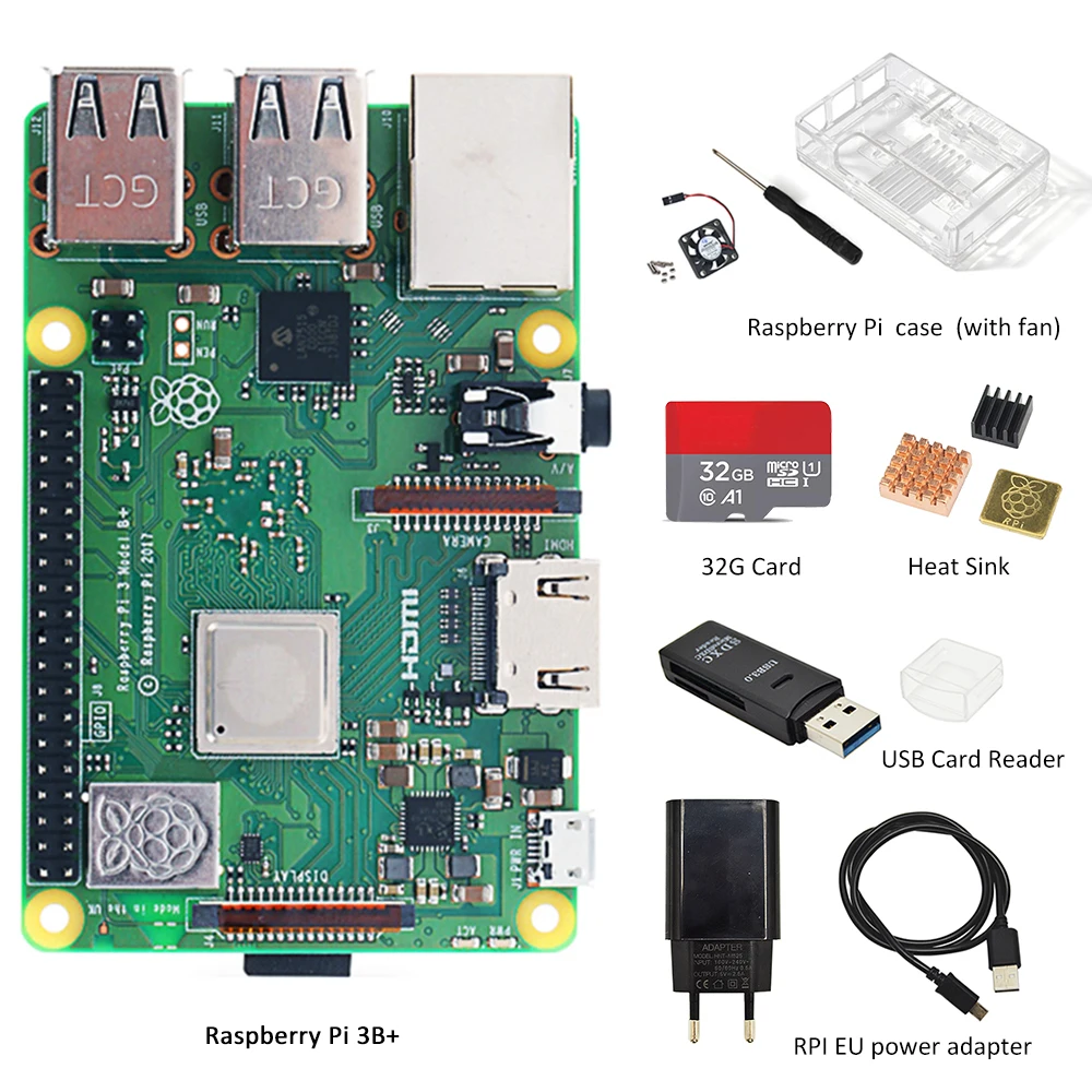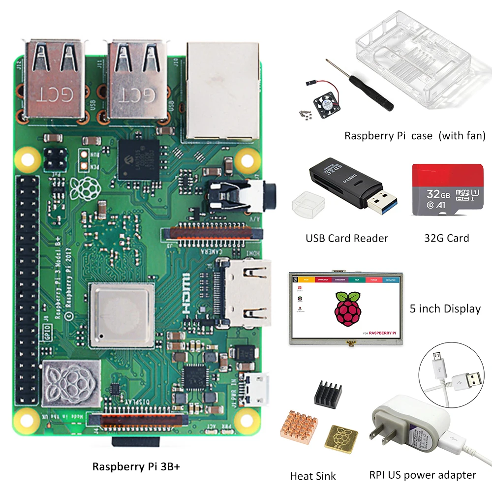 In stock Raspberry pi 3b plus screen kit +5 inch screen + 32G TF card + multi-card reader + heatsink +EU/US power supply+case