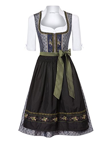 Il costume Isabelle di Stockerpoint avrebbe anche voluto le rosse: i tralci di rose finemente ricamati sul corpetto sottolineano il décolleté in modo incantevole e magari attirano anche un principio. Un elegante melange di colore blu scuro, tortora e verde scuro si prende la base del tessuto jacquard di alta qualità, che è dotato di innumerevoli piccoli fiori. Un particolare punto di attrazione è il ricamo sul grembiule nero, che si adatta perfettamente all'ornamento del corpetto.
