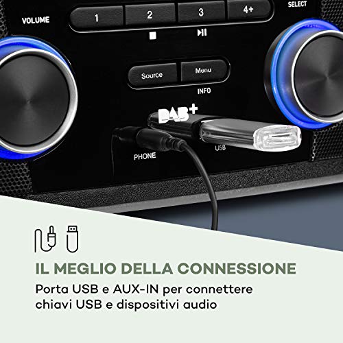 QUALITÀ DEL SUONO: Con il sintonizzatore DAB+ è possibile ricevere tutte le emittenti radio FM e digitali, che vengono poi riprodotte in altissima qualità. Panoramica sulla programmazione, informazioni, notizie e titoli possono essere letti comodamente sul grande display a colori.