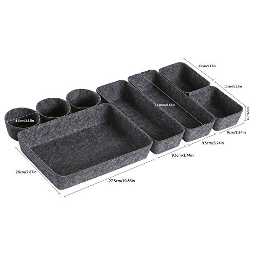 Stocomodi Organizer Cassetti da Scrivania, Set di 8 Divisori per Cassetti Versatili, Organizzatori per Cassetti Pieghevoli in Feltro, Vassoio per Cosmetici e Ufficio Lavabili