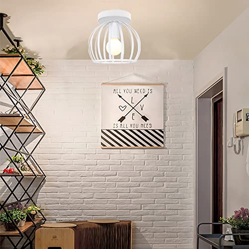 STOEX - Lampada da soffitto vintage industriale, design a forma di gabbia anguria, in metallo, lampada da soffitto, lampada a LED, per soggiorno, camera da letto, sala da pranzo, bianco