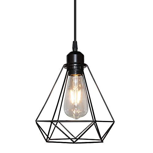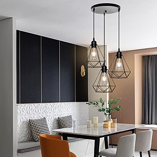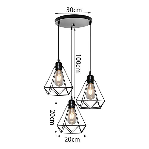 STOEX - Lampada a sospensione vintage industriale, 3 lampadine, design a gabbia geometrica, stile vintage, lampada da soffitto E27, colore: Nero