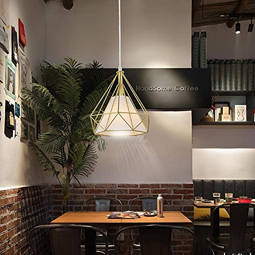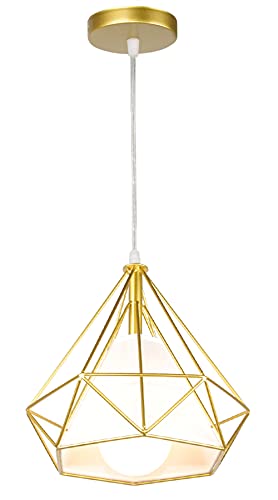 STOEX - Lampadario a sospensione industriale, 25 cm, lampada da soffitto, paralume a forma di diamante, corda regolabile, colore: Oro