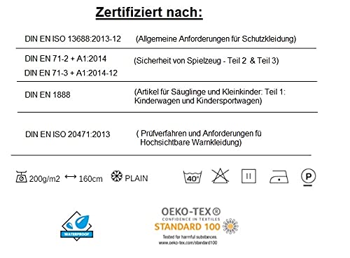 Breve descrizione/caratteristiche: leggero tessuto in nylon Cordura 300D, circa 63 g/pezzo. Morbido, piacevole al tatto e flessibile, lavabile, antimacchia, impermeabile, estremamente resistente e facile da stampare. Certificato secondo Oeko-Tex Standard 100, secondo DIN EN 71-2 e -3 per la sicurezza dei giocattoli, secondo DIN EN ISO 13688 per abbigliamento protettivo. Particolarmente adatto per la stampa, tovaglia, passeggino, borse, zaini, coperture, abbigliamento per animali domestici, ecc.