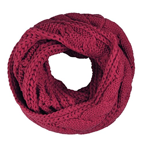 Stofirst Inverno Donne Uomini Torcere Intrecciato Elastico Caldo Circle Loop Snood Sciarpa Unisex Tinta Unita A Maglia Crochet Tubo Infinity Scaldacollo Fazzoletto da Collo(Rosso)