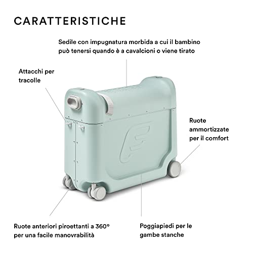 ESPERIENZA DI PRIMA CLASSE - JetKids by Stokke BedBox è l'unica valigia per bambini ad essere cavalcabile e utilizzabile come letto o poggiapiedi. Quando il segnale della cintura di sicurezza si spegne, la valigia si trasforma in un letto in 5 step.