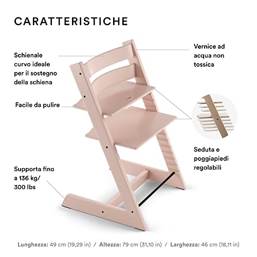 Stokke Sedia Tripp Trapp di, Serene Pink - Sedia evolutiva e interamente regolabile per neonati, bambini e adulti - Comoda, confortevole ed ergonomica - Modello classico