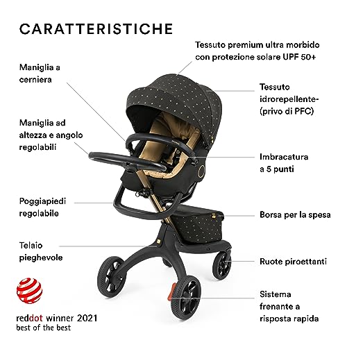 Stokke Xplory X, Signature - Passeggino regolabile per il comfort del bambino e dei genitori - Imbottitura, Imbracatura e cerniera riflettente per una maggiore sicurezza - Si piega facilmente