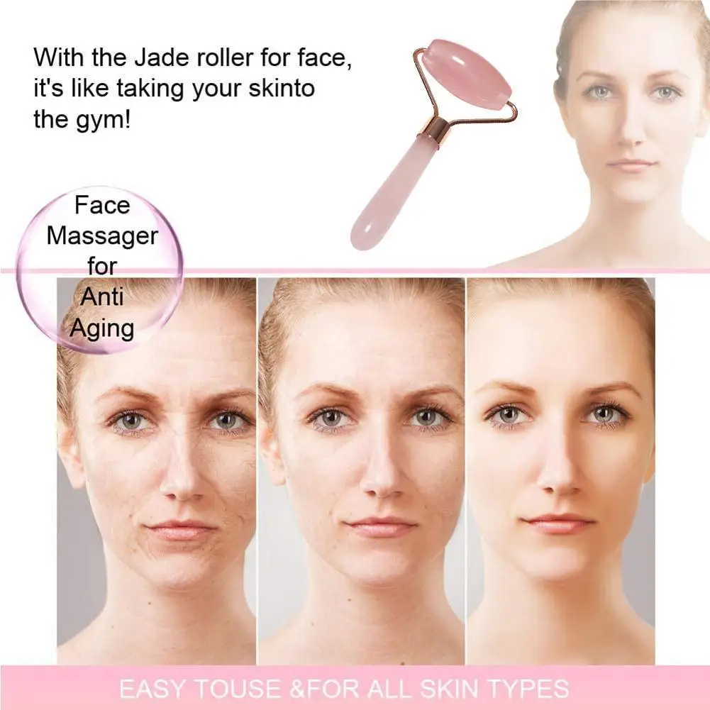 Jade Stone Rollers Massager For Face Pink Rose Quartz Stone Natural Up Skin Care Beauty Roller Chin Slimming Lift P9R7