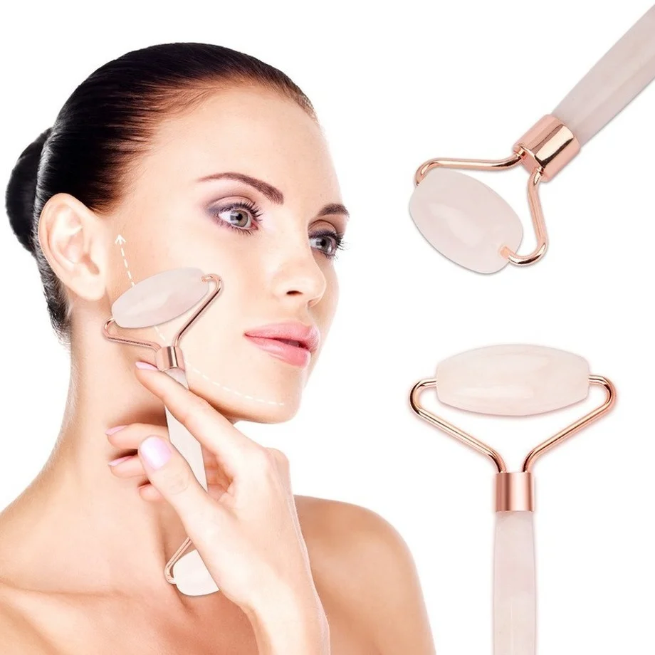 Jade Stone Rollers Face Massager Pink Rose Quartz Natural Stone Slimming Chin Lift Up Facial Facial Beauty Roller Skin Care Tool