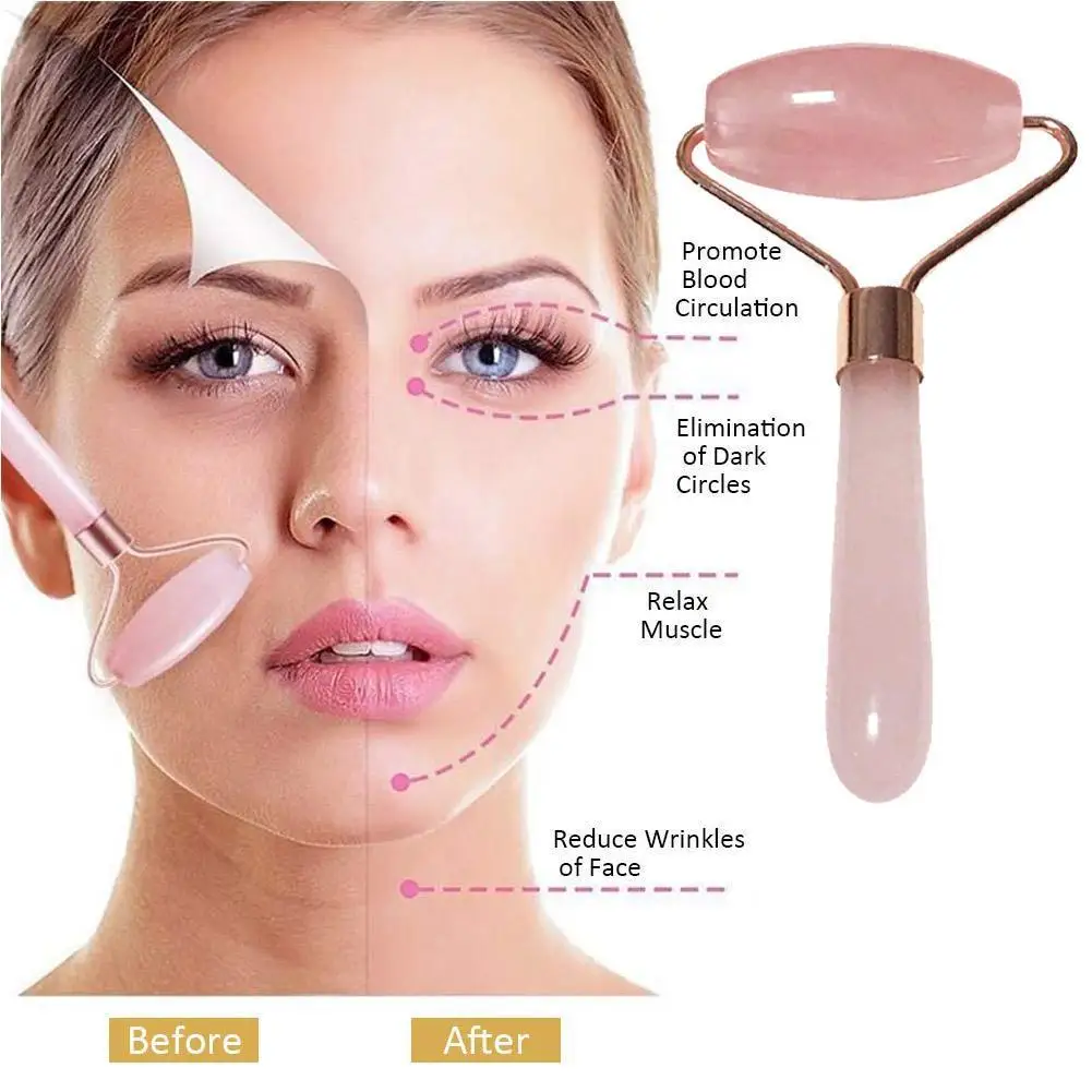 Jade Stone Rollers Massager For Face Pink Rose Quartz Stone Slimming Chin Up Beauty Care Lift Skin Natural Roller Q1N2