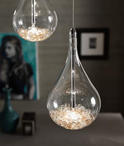 LAMPADARIO: Il lampadario a sospensione Perle presenta un design elegante e raffinato che si integra perfettamente in qualsiasi ambiente. Il suo pendenti a forma di goccia in vetro trasparente con cristalli colorati offre una luce brillante e scintillante che aggiunge un tocco di stile alla tua casa.