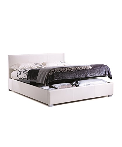 Stones Letto matrimoniale, in ecopelle, bianco con contenitore e rete a doghe, mod. Francesca