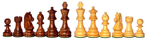 Il re è alto 3,75 pollici e gli altri pezzi sono proporzionati ai re. I pezzi sono realizzati a mano su legno indiano Premium e bosso