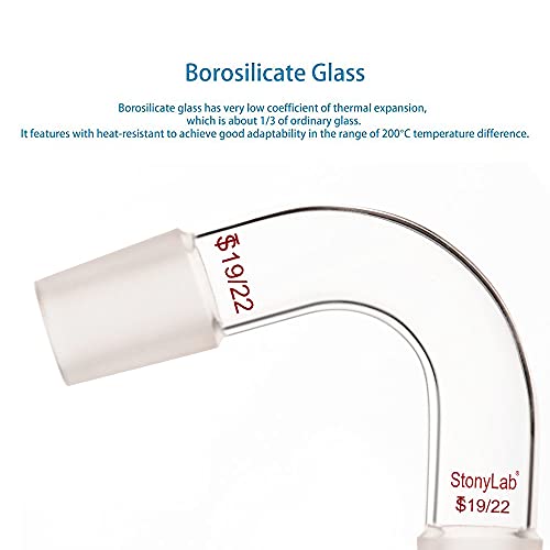 Stonylab Adattatore di Distillazione, 75 Gradi a Gomito Vetro Distillazione Adattatore con 19/22 Interno per Forniture di Laboratorio