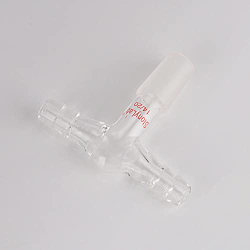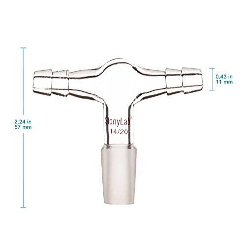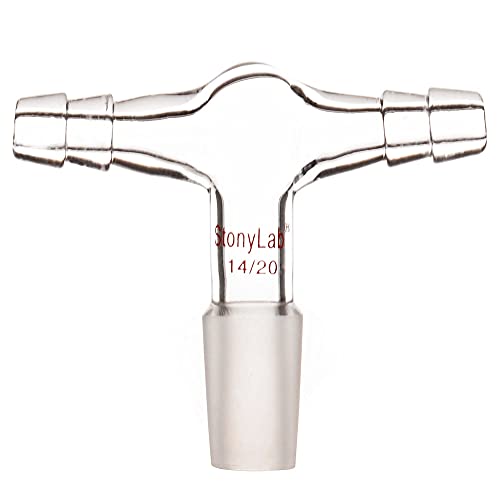 Stonylab Adattatore di Ingresso per Doppio Tubo in Vetro, Adattatore per Vuoto/Gas Inerte a Forma di T in Vetro Borosilicato con Doppi Collegamenti per Tubi da 3/8 di Pollice e Giunto Interno 14/20