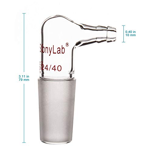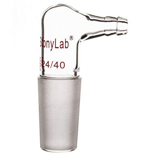 Stonylab Adattatore Vuoto/Gas in Vetro a 90 Gradi, Adattatore di Ingresso Piegato in Vetro Borosilicato con Giunti Interno 24/40 e Tubo Flessibile per Fornitura di Laboratorio