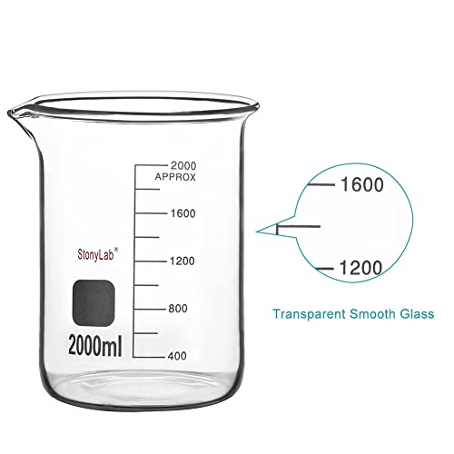 Stonylab Bicchiere di vetro, 1 Confezione Vetro Borosilicato Graduated Low Form Griffin Beaker con Becco di Versamento Bicchiere da Laboratorio, 2000 ml