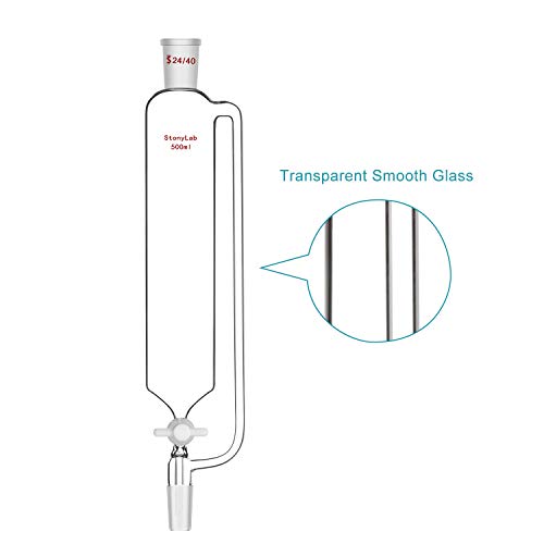 Stonylab Imbuto di Pressione Equalizzante, Pressione di Erogazione Imbuto in Vetro Lab Borosilicato Equal Press Funnel con Tappo di Arresto in PTFE per Laboratorio (500ml, 24/40 Joint)