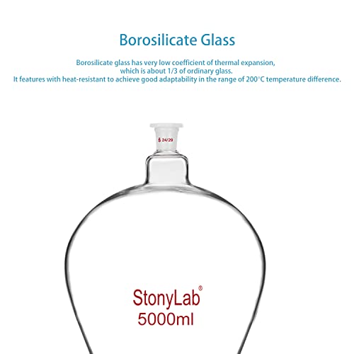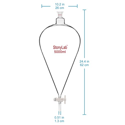 StonyLab Imbuto Separatore Conico da 5000ml in Vetro Borosilicato Pesante con Giunti 24/29 e Rubinetto di Chiusura in PTFE Conical Separatory Funnel - 5000ml