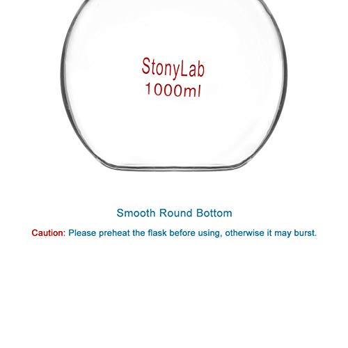 Stonylab Pallone per Ebollizione da Laboratorio, Pallone di Ebollizione di Vetro Pallone da Ebollizione a Fondo Piatto con Giunto Esterno Conico Standard 29/42, 1000 ml