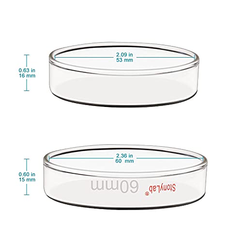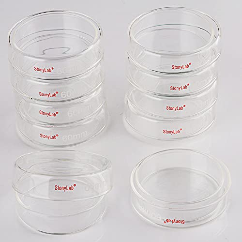 Stonylab 10pz Piastre Petri Vetro, 60x15 mm Piastre per Colture Cellulari in Vetro Borosilicato Autoclavabili Piastre Petri con Coperchio Trasparente per Laboratorio
