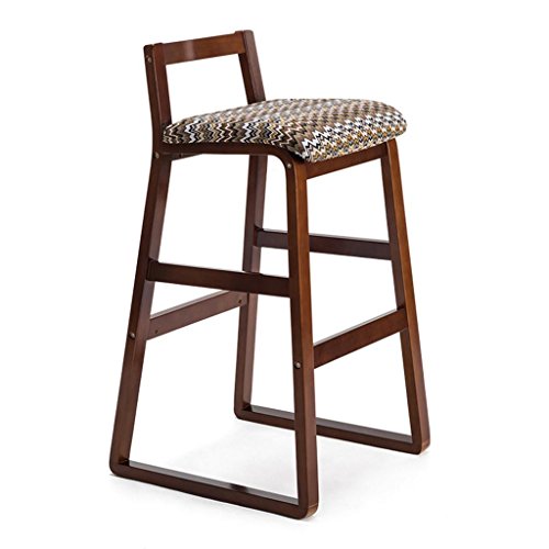 GZD Tall Stool Sgabello alto Legno massiccio Semplice Seggiola da bar Biancheria sede Tutto il legno stent Indietro Schienale Gambe trapezoidali 49 * 34 * 90cm 48 * 34 * 81,5cm più colore sede Adatto a bar ristorant, 75cm, 5