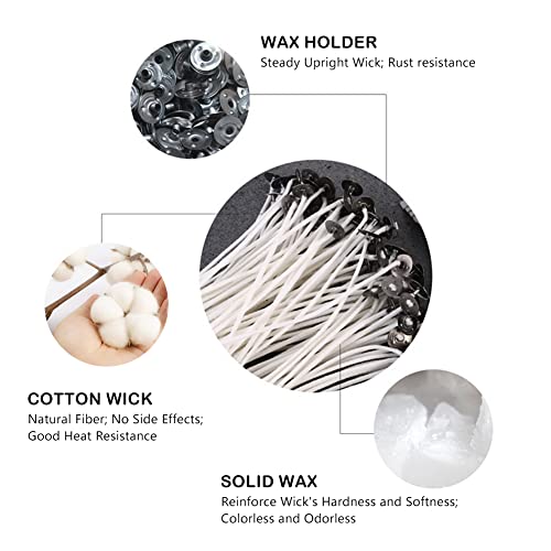 Materiali di alta qualità: materiale è pre-waxed cotton threads, non contiene piombo, zinco o altri metalli. Le nostre ciocche bruciano più lentamente senza cattivo odore. La fiamma ha una dimensione ragionevole e non vacilla. Gli adesivi adesivi resistenti al calore mantengono le ciocche in posizione nella cera calda.