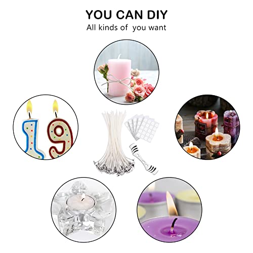 Stoppini per Candele,Stoppini per Candele,Punta per candela,Naturale Stoppini per Candele Set,15cm DIY Candele Set con 50 Adesivi per Candele+50 Stoppino Base+Stoppino di Supporto,20 cm