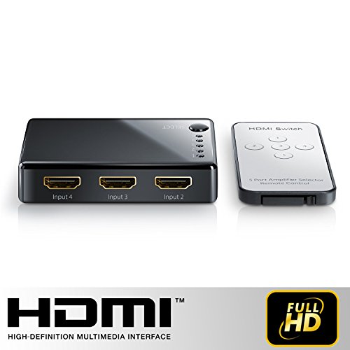TECH STOR3 - 5 Port Switch Full HD HDMI / commutatore | Commutazione automatica | con amplificatore | 3D Ready fino a 1080p | compreso telecomando (HDMI SWITCH - 5 x IN / 1 x OUT)