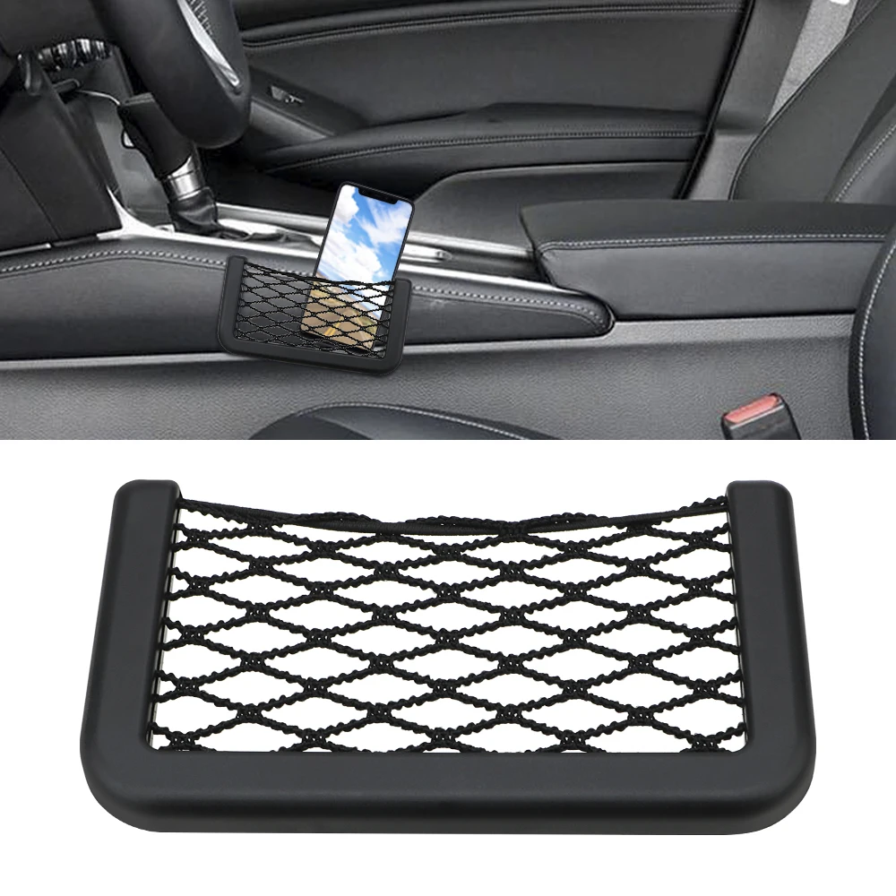 Car Seat Storage Pocket Car Storage Net Organizer Bag Adhesive Pouch Drink Tissue Phone Holder Stowing Tidying Auto Accessories