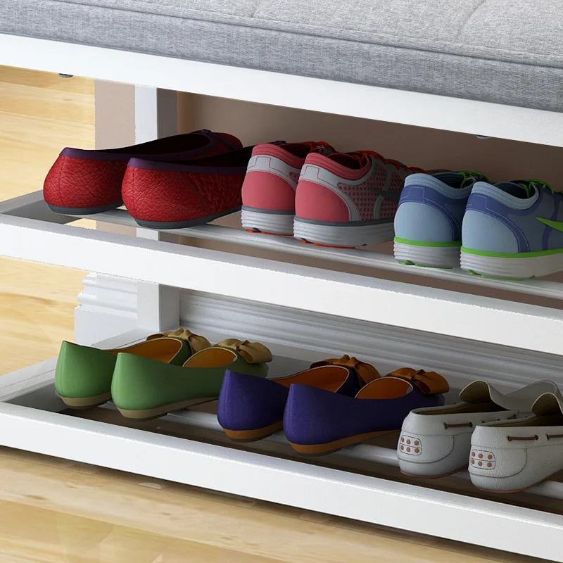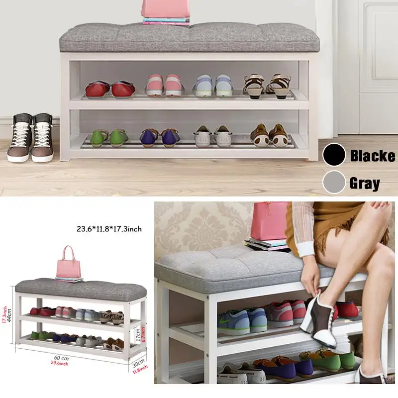 2 Tier Shoe Storage Stool Living Room Shoe Rack Hallway Simple Change Shoe Bench Organizer Flax/Leather Cushion Shoes Cabinet