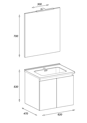 Il mobiletto che costituisce la base è caratterizzato da 2 ante con chiusura rallentata, gola orizzontale superiore per una confortevole presa e apertura centrale. Lo spazio interno del mobile non prevede tramezzi ed è pertanto interamente sfruttabile facilitando il riassetto quotidiano degli oggetti. Dimensioni della base portalavabo: LARGHEZZA 62 CM - PROFONDITÀ 47 CM - ALTEZZA 53 CM