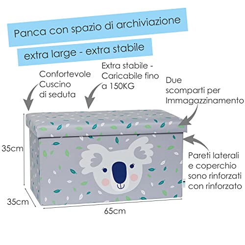 LOVE IT STORE IT - Cassapanca Portaoggetti Bambini - Baule Per Giocattoli 2 Scomparti - Tessuto Ultra Resistente - Pieghevole - Rinforzi In Legno - Extra Large 65x35x35cm - Fantasia A Koala In Grigio