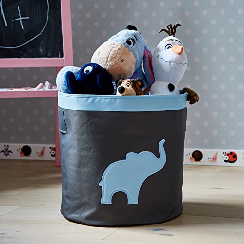 LOVE IT STORE IT - Cestino Rotondo - Tessuto Ultra Resistente - Per Cameretta Bambini - Adatto Anche Come Contenitore Per Il Bucato - 44x44x44 cm - Grigio Con Fantasia A Elefante Blu
